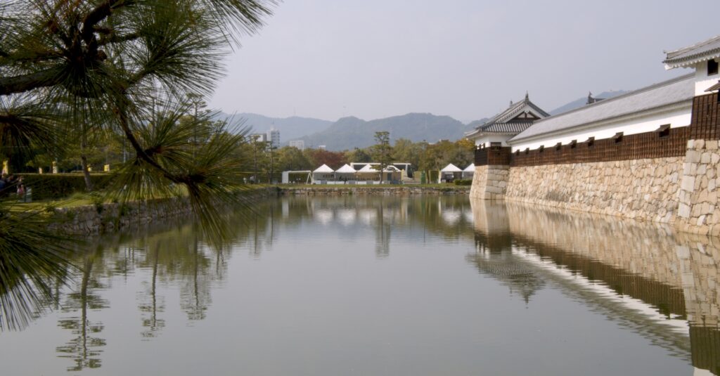 広島城は、水のある堀に囲まれた城です。